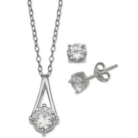 Be the epitome and grace and sparkle in this elegant cubic zirconia pendant necklace and coordinating stud earring jewelry set from Giani Bernini.