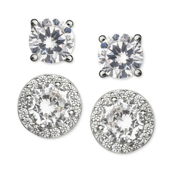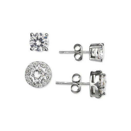 Be ready for any occasion with the dazzling versatility of this two-piece set of solitaire and halo cubic zirconia stud earrings from Giani Bernini.