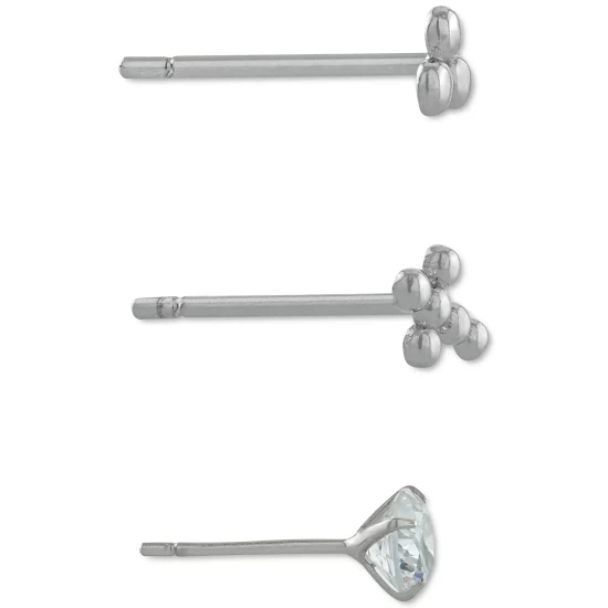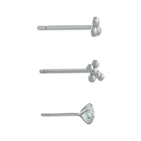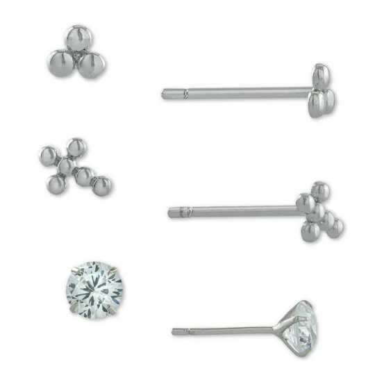 A bead theme includes a cross and a cluster in this three piece stud earrings set, with cubic zirconia solitaire studs – from Giani Bernini.
