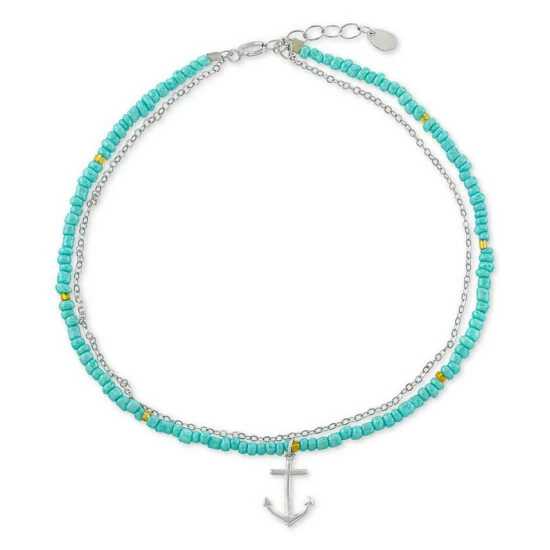 Navigate style with this marine-motif anchor charm crystal beaded ankle bracelet, from Giani Bernini.