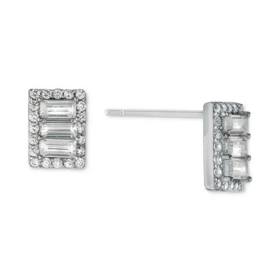 Clean-lined elegance in these modern cubic zirconia baguette halo stud earrings from Giani Bernini.