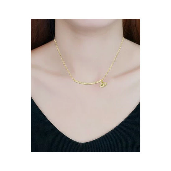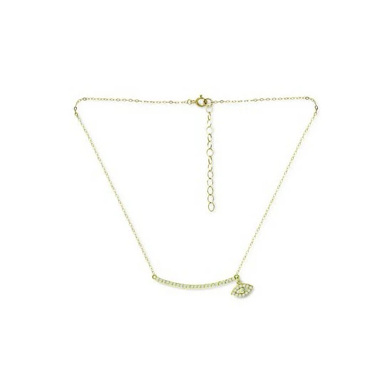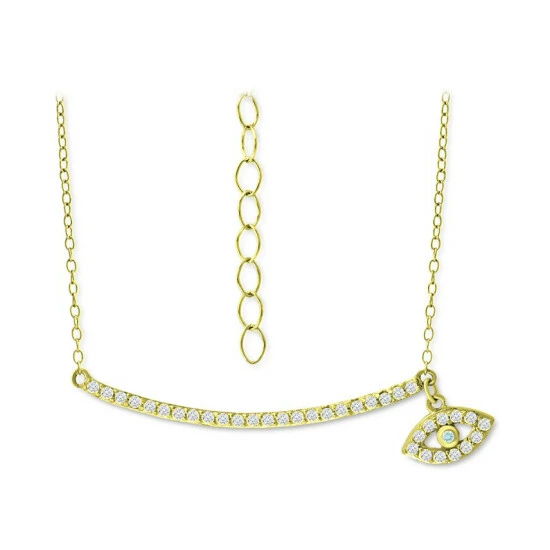 A dainty evil eye charm hangs from a curved bar in this stylish cubic zirconia pendant necklace from Giani Bernini.
