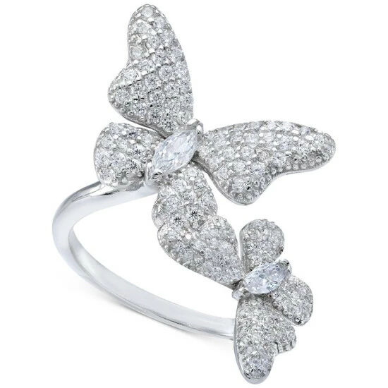 Feel chic and sparkly in these wistful cubic zirconia butterfly statement ring.