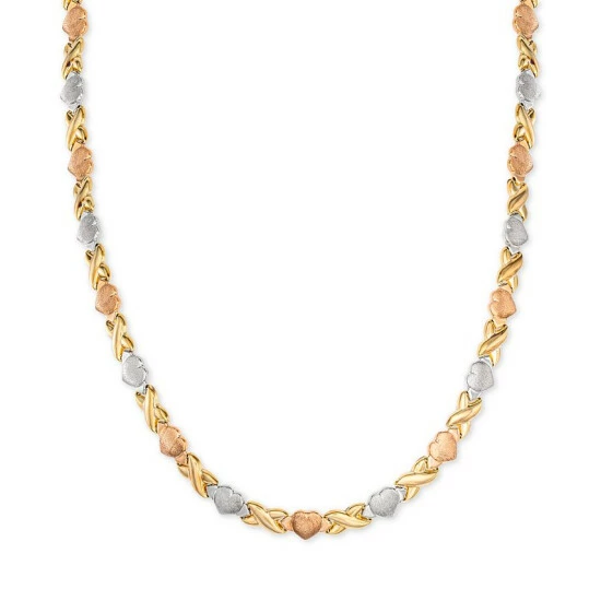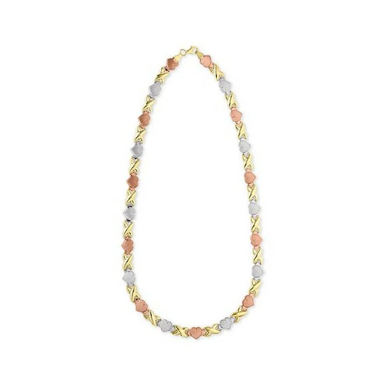 Pretty hearts alternate with polished “x” kisses on this whimsical tricolor statement necklace from Giani Bernini. Also in gold over silver and sterling silver.