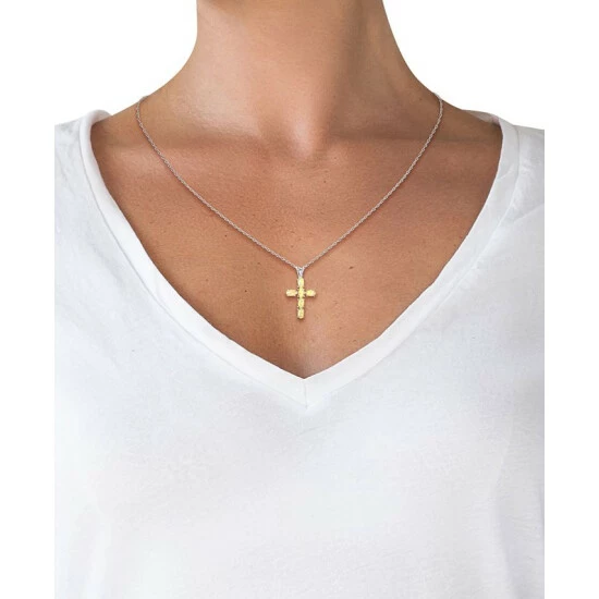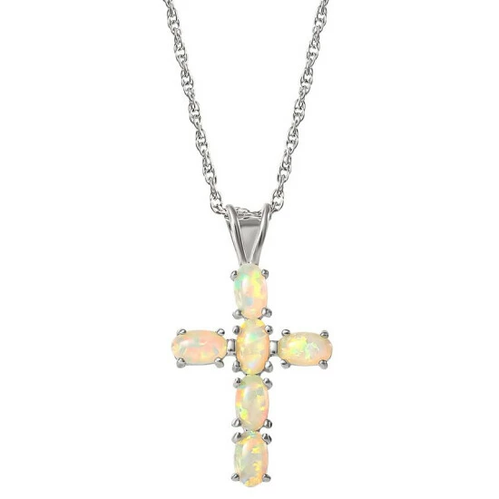 Fiery lab-created opals grace a sterling silver cross pendant necklace, from Giani Bernini.