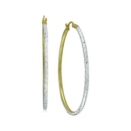 An attention-getting polished diamond-cut texture adds glamour and elegance to these gorgeous two-tone hoop earrings from Giani Bernini.